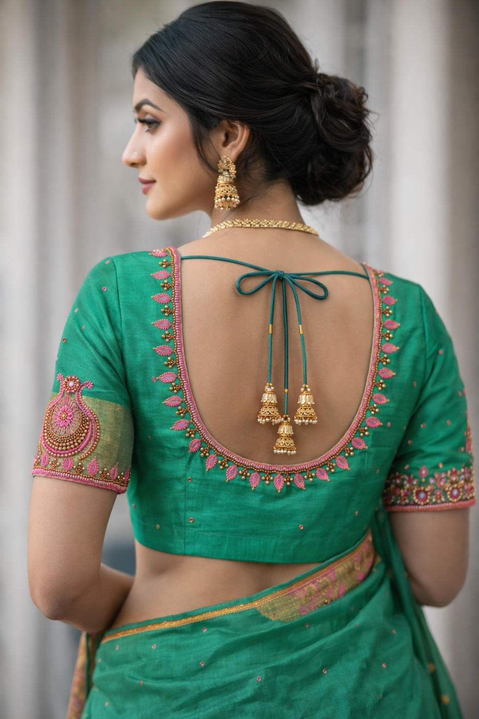Aari Blouse - Light Green with Pink Thread Works quantity