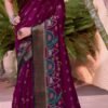 Royal Magenta Silk with Peacock Motif Border & Zari Weaving