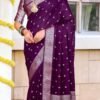 Elegant Plum Purple Silk Saree with Silver Zari Butti & Rich Border