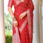 Classic Red Silk Saree with Silver Zari Butti and Rich Border