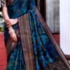 Royal Teal Blue Floral Silk Saree with Antique Zari Border