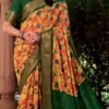 Elegant Mustard Yellow & Green with Floral Prints & Zari Border
