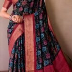 Elegant Black Floral with Red Zari Border & Pallu quantity