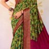 Elegant Lime Green Floral with Pink Pallu & Zari Border