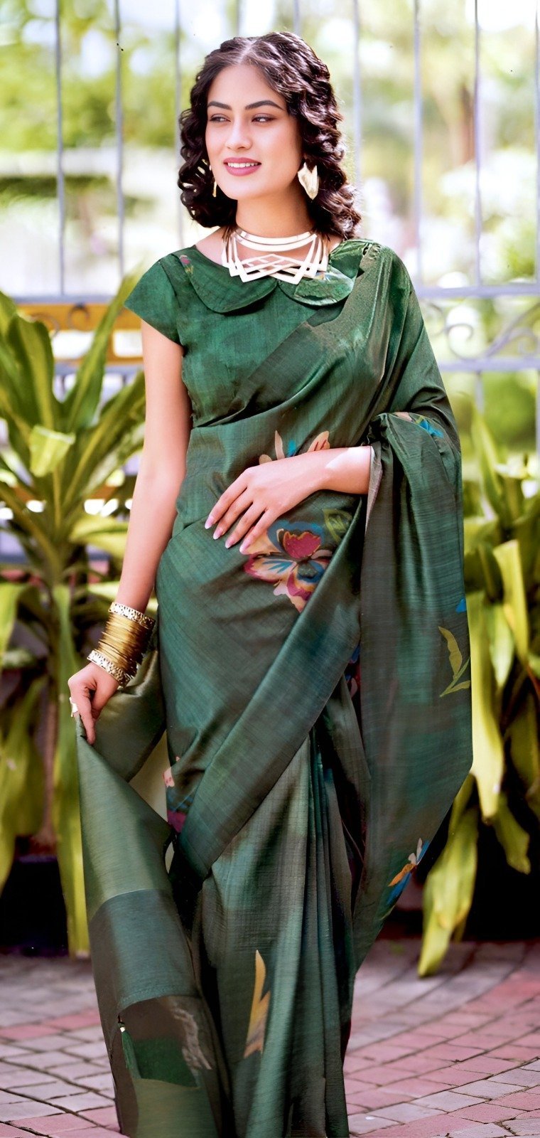 Elegant Deep Green Soft with Subtle Floral Prints quantity