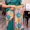 Elegant Teal Green Soft Silk with Artistic Floral Prints