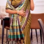 Elegant Olive Brown Soft Silk with Artistic Floral Prints