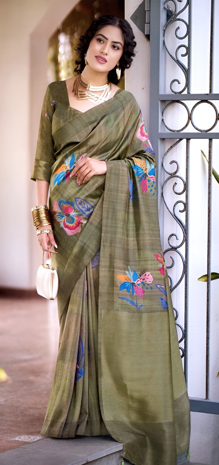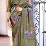 Elegant Olive Green Soft with Floral Motifs