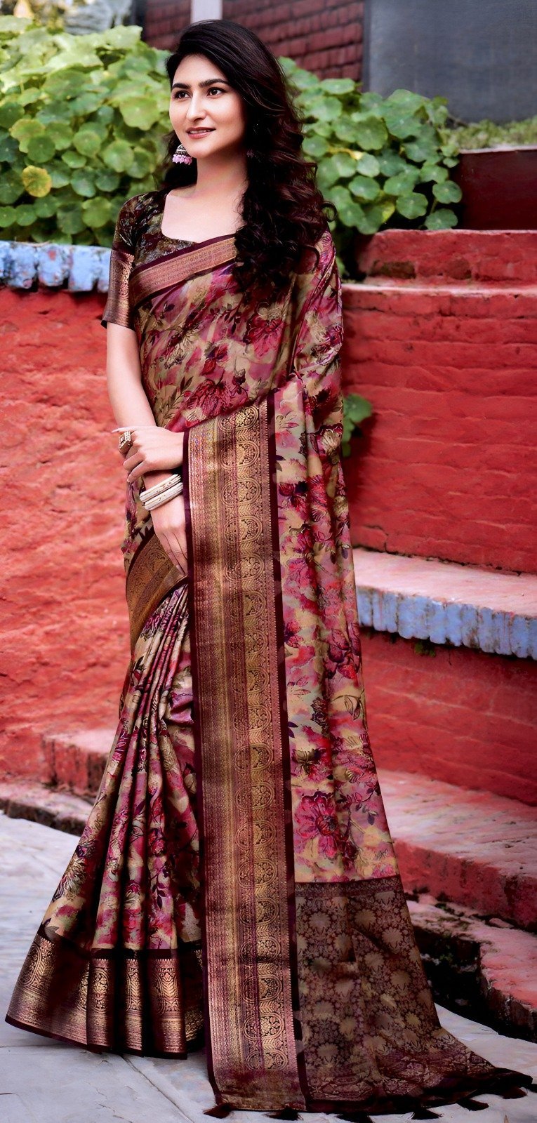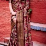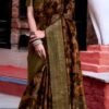 Classic Bronze Brown Floral Silk Saree with Rich Antique Zari Border