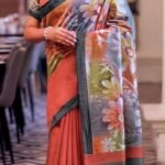 Elegant Rust Orange Soft with Artistic Floral Prints