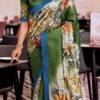 Elegant Teal Green Soft Silk with Artistic Floral Prints