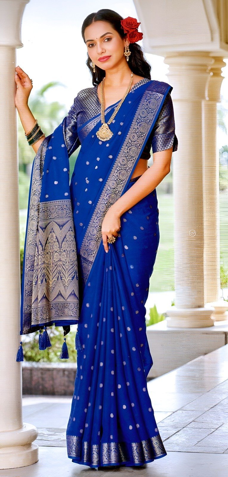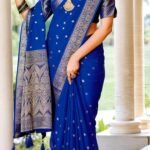Royal Blue Silk Saree with Silver Zari Butti & Ornate Border