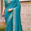 Elegant Teal Green Silk Saree with Silver Zari Butti & Rich Border