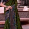 Elegant Olive Green Silk with Navy Blue Zari Border & Bird Motifs