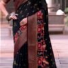 Classic Black Silk with Maroon Zari Border & Artistic Motif Design