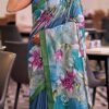 Elegant Teal Blue Soft Silk with Artistic Floral Prints
